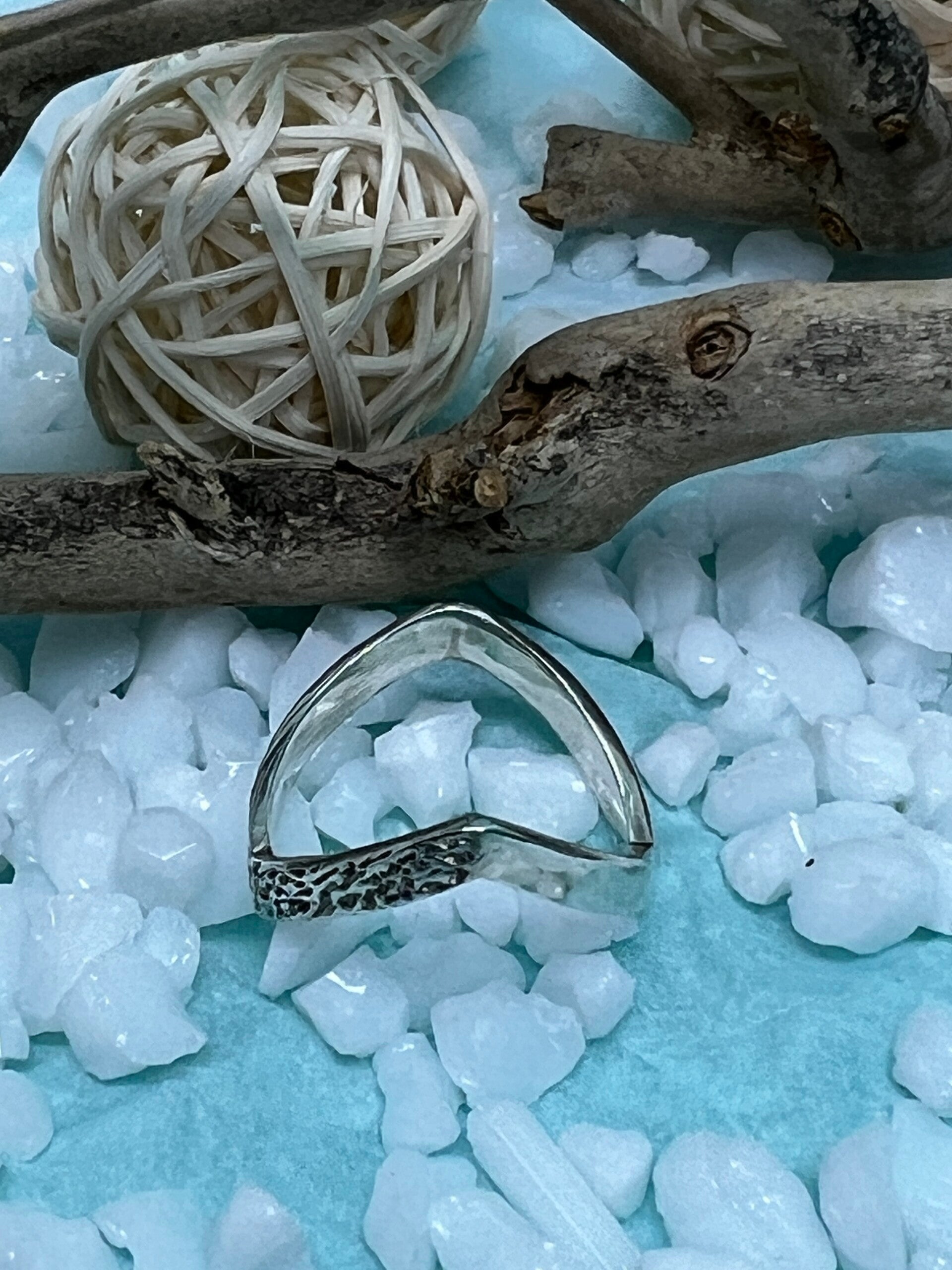 Materiaal: Sterling zilver 925. De ring is 1,5mm dik en 3,5mm breed. met 4 punten. en voor de helft voorzien van structuur.