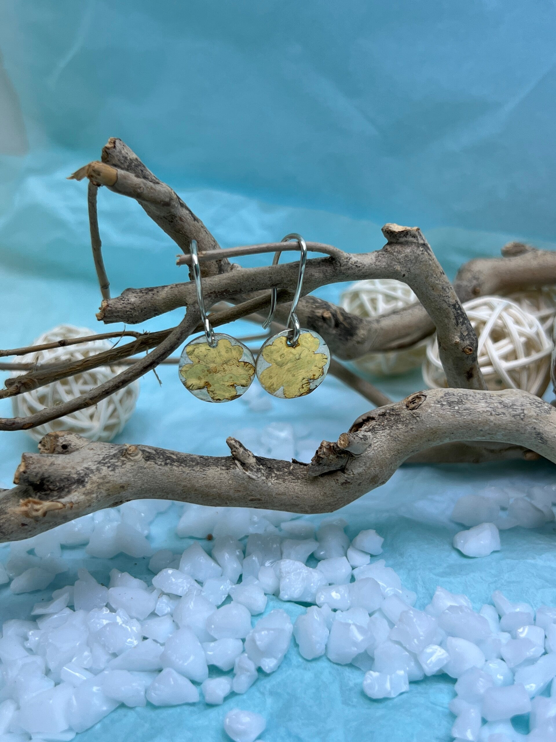 Oorbellen: bloem met bladgoud