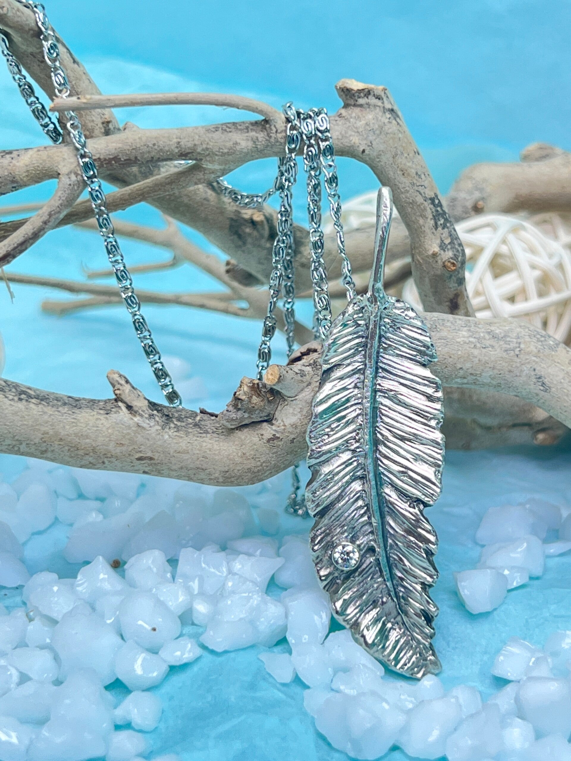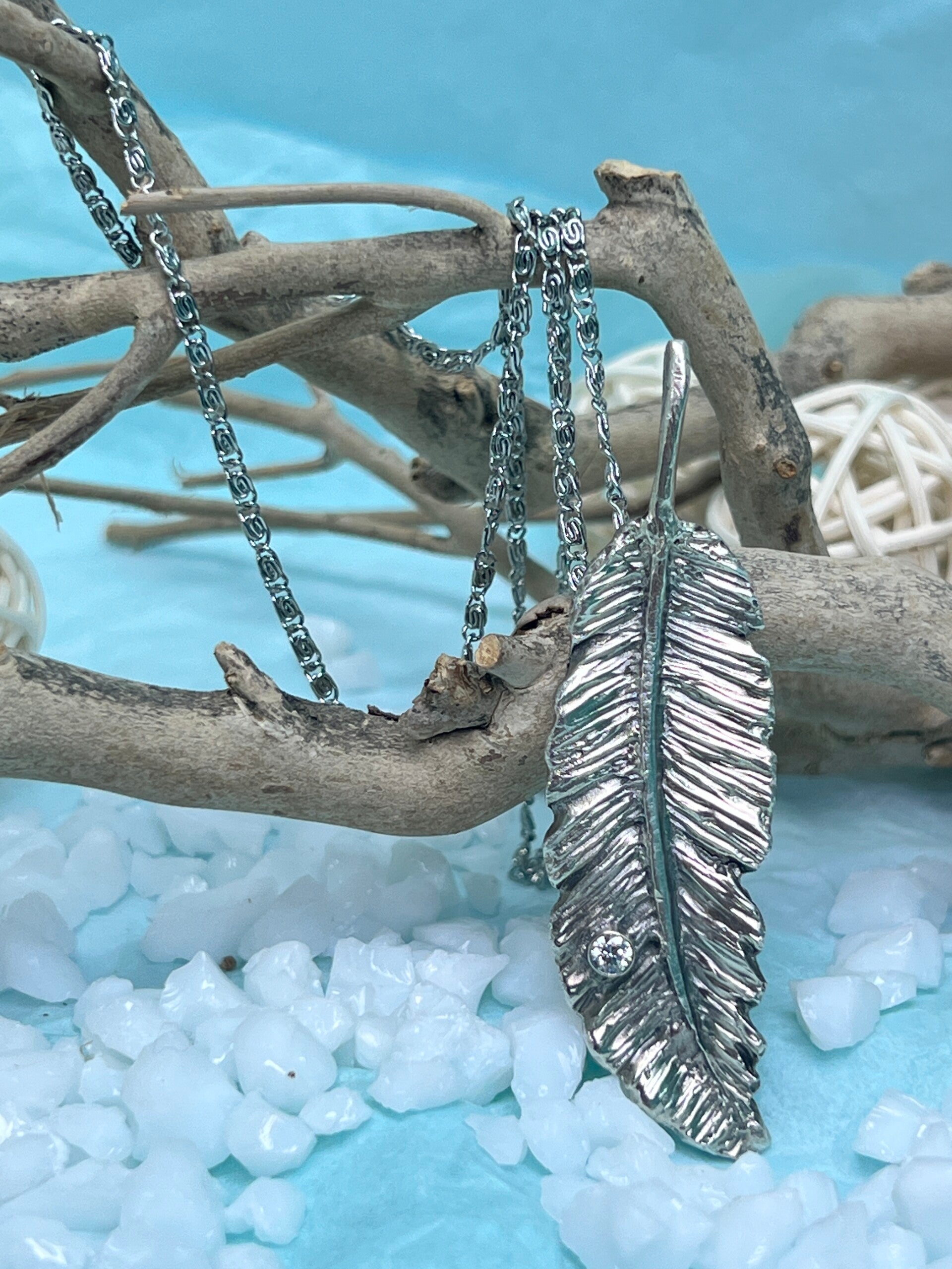Maat: Het blad is circa 60mm lang en 20mm breed. De ketting is circa 43cm incl. karabijnslot.