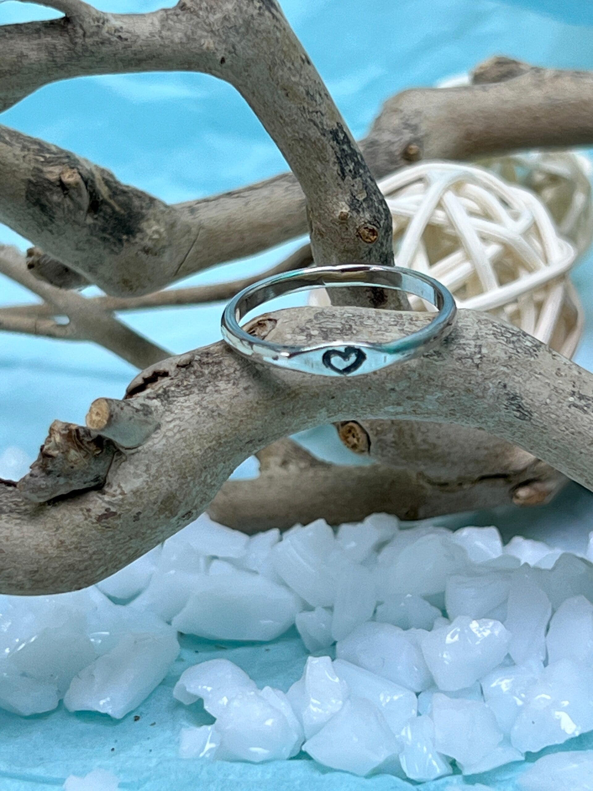 Materiaal: Sterling Zilver 925. Half ronde draad 2mm. Met een hartje in het midden van de ring.