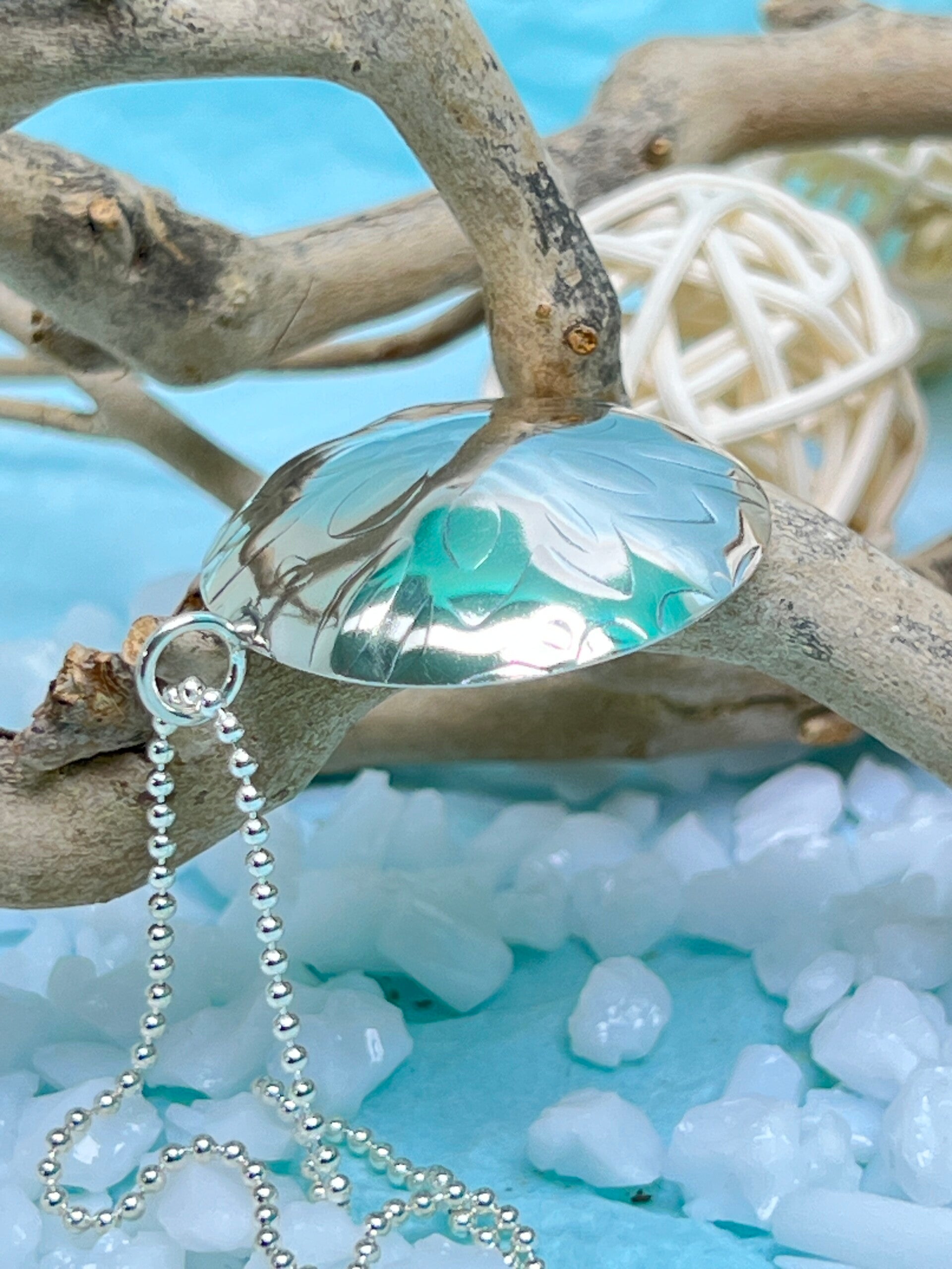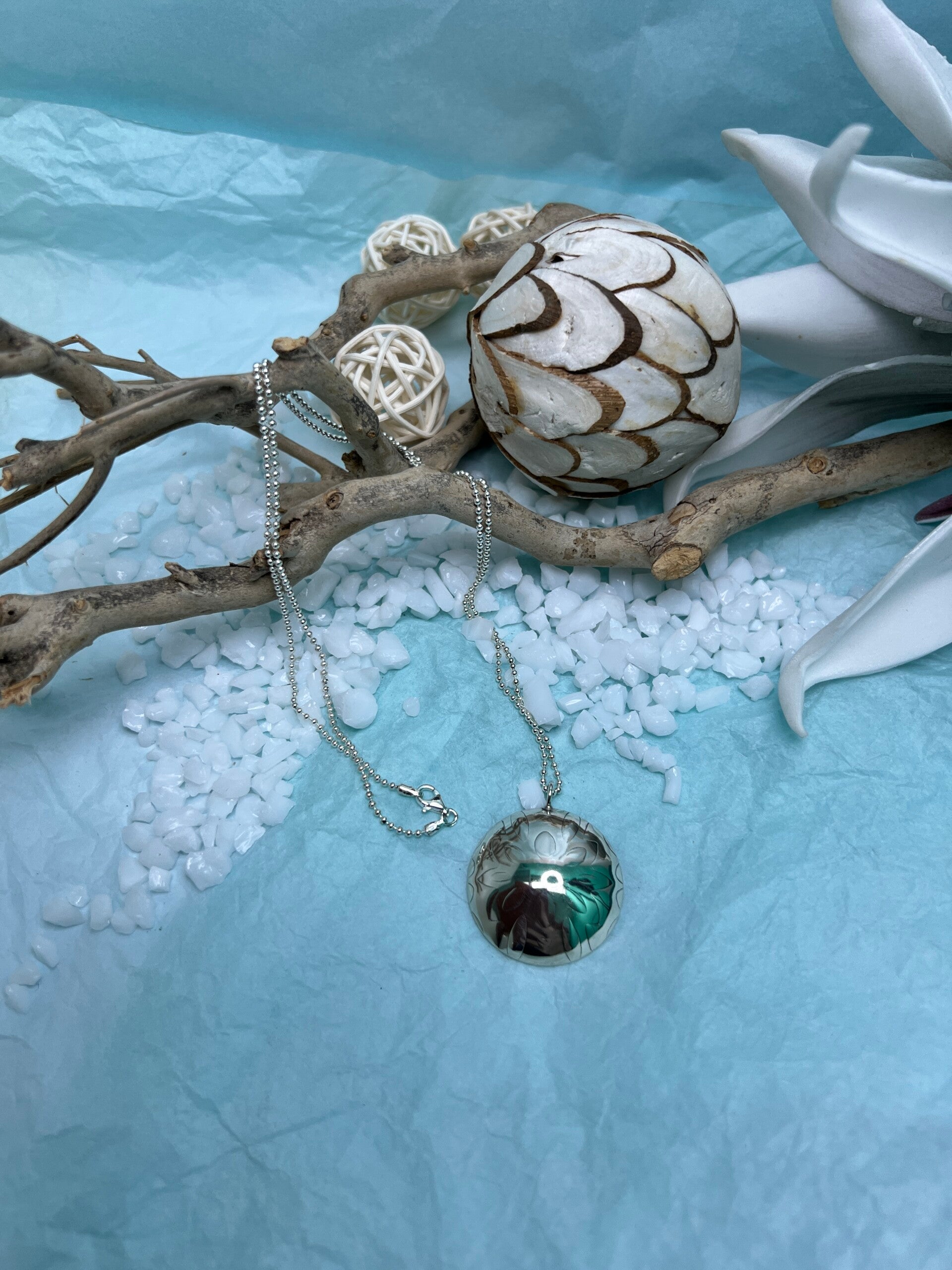 Maat: De hanger is 30mm Ø en de ketting is 60cm lang en voorzien van een karabijnslot.