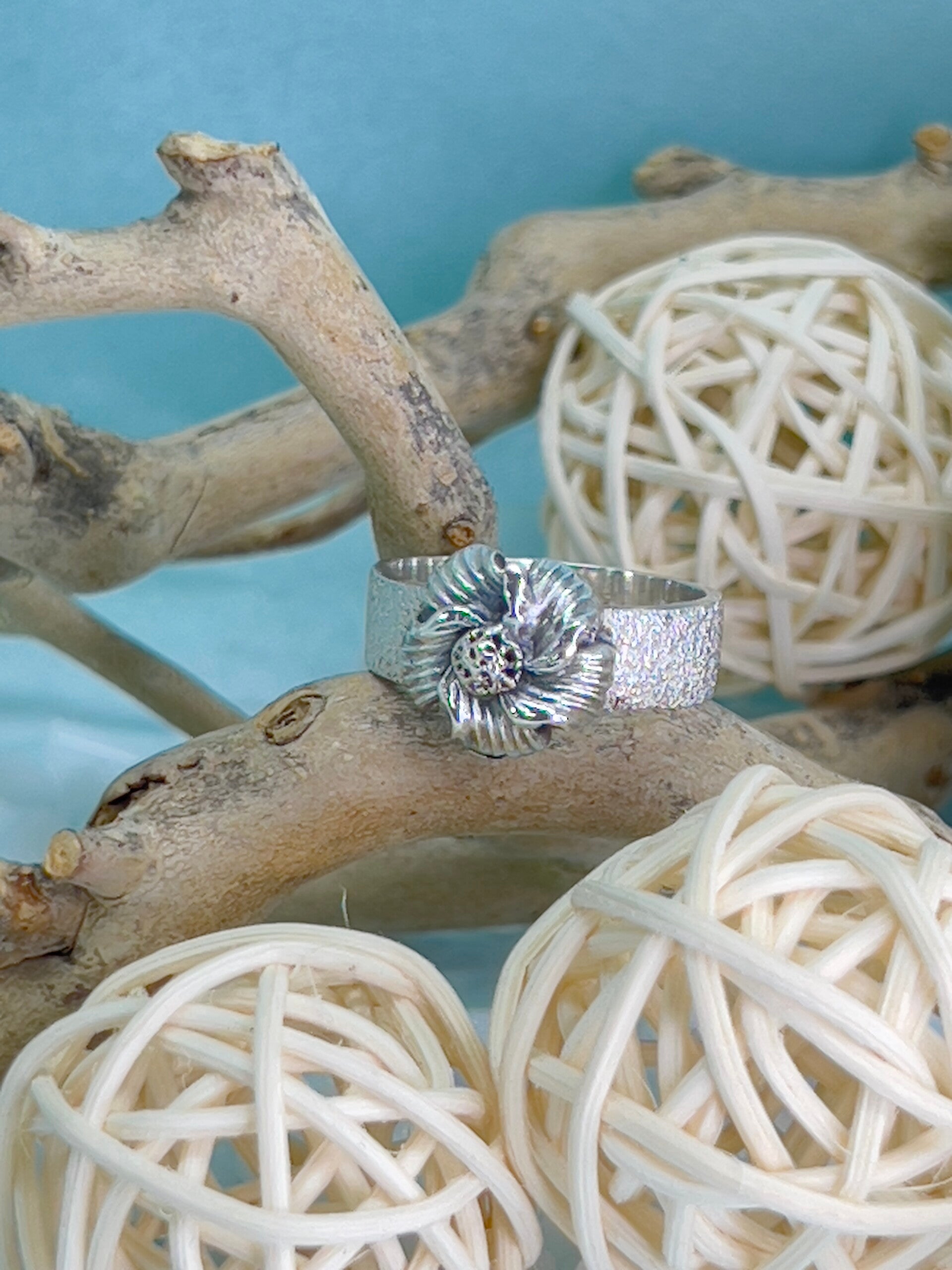 Materiaal: Zilverklei (99,9% zilver). De ring is 6mm breed en 1,2mm dik.