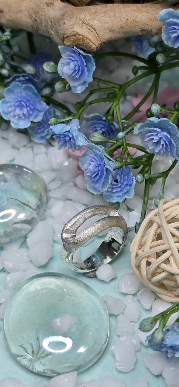 Materiaal: Sterling zilver 925. Deze opengewerkte ring is voor de helft voorzien van structuur.